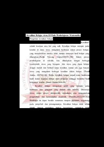 xii ABSTRAK Penelitian ini bertujuan untuk menganalisis kesulitan belajar yang dialami siswa dalam penerapan Projek Penguatan Profil Pelajar Pancasila (P5) pada pembelajaran matematika di kelas IV SDN 66 Kota Bengkulu. Penelitian ini menggunakan pendekatan deskriptif kualitatif dengan teknik pengumpulan data melalui observasi, wawancara, dan dokumentasi. Subjek penelitian adalah siswa kelas IV serta guru mata pelajaran matematika. Hasil penelitian menunjukkan bahwa terdapat beberapa kesulitan yang dihadapi siswa, antara lain: rendahnya pemahaman konsep matematika, kurangnya keterlibatan aktif siswa dalam kegiatan proyek, serta kendala dalam bekerja sama dan berpikir kritis sesuai dengan nilai-nilai yang diusung oleh P5. Faktor penyebab kesulitan belajar meliputi perbedaan kemampuan akademik siswa, kurangnya media pembelajaran yang mendukung integrasi P5, serta belum optimalnya peran guru dalam mengaitkan materi matematika dengan konteks proyek. Temuan ini memberikan gambaran penting bagi pengembangan strategi pembelajaran yang lebih efektif dan integratif dalam mendukung implementasi P5 di sekolah dasar.