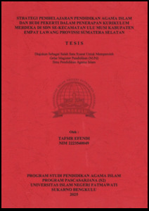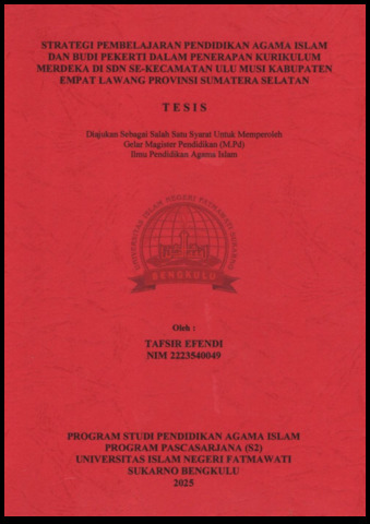 EFENDI, EFENDI (2025) STRATEGI PEMBELAJARAN PENDIDIKAN AGAMA ISLAM DAN BUDI PEKERTI DALAM PENERAPAN KURIKULUM MERDEKA DI SDN SE-KECAMATAN ULU MUSI KABUPATEN EMPAT LAWANG PROVINSI SUMATERA SELATAN. Magister (S2) thesis, UIN Fatmawati Sukarno Bengkulu.