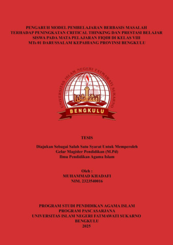 Khadafi, Muhammad (2025) Pengaruh Model Pembelajaran Berbasis Masalah Terhadap Peningkatan Critical Thinking Dan Prestasi Belajar Siswa Pada Mata Pelajaran Fiqih Di Kelas Viii Mts 01 Darussalam Kepahiang Provinsi Bengkulu. Magister (S2) thesis, UIN Fatmawati Sukarno Bengkulu.