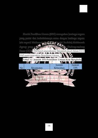 Andalena, Marlen (2025) IMPLEMENTASI UNDANG-UDANG NOMOR 10 TAHUN 2016 TENTANG PEMILIHAN GUBERNUR,BUPATI DAN WALIKOTA PASAL 158 A PENCATUTAN DATA DUKUNGAN CALON PERSEORANGAN PERSFEKTIF FIQIH SIYASAH PADA TAHAPAN ADMINISTRASI PEMILIHAN WALIKOTA DAN WAKIL WALIKOTA BENGKULU PERIODE 2024-2026. Undergraduate (S1) thesis, UIN Fatmawati Sukarno Bengkulu.