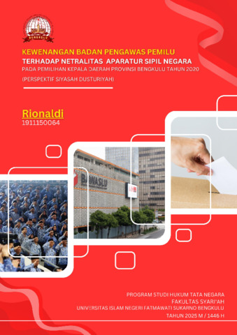 RIONALDI, RIONALDI (2025) KEWENANGAN BADAN PENGAWAS PEMILIHAN UMUMTERHADAPNETRALITAS APARATUR SIPIL NEGARA PADA PEMILIHANKEPALA DAERAH PROVINSI BENGKULU TAHUN2020 (PERSPEKTIF SIYASAH DUSTURIYAH). Undergraduate (S1) thesis, UIN Fatmawati Sukarno Bengkulu.