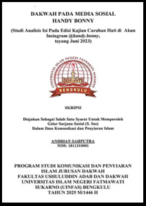 Saputra, Andrian (2025) DAKWAH PADA MEDIA SOSIAL HANDY BONNY (Studi Analisis Isi Pada Edisi Kajian Curahan Hati di Akun Instagram @handy.bonny, tayang Juni 2023). Undergraduate (S1) thesis, UIN Fatmawati Sukarno Bengkulu.