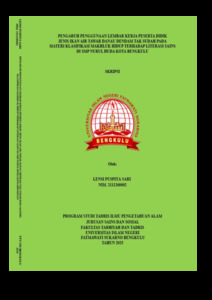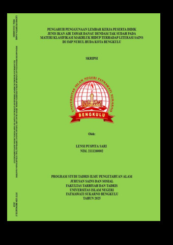 Sari, Lensi Puspita (2025) PENGARUH PENGGUNAAN LEMBAR KERJA PESERTA DIDIK JENIS IKAN AIR TAWAR DANAU DENDAM TAK SUDAH PADA MATERI KLASIFIKASI MAKHLUK HIDUP TERHADAP LITERASI SAINS DI SMP NURUL HUDA KOTA BENGKULU. Undergraduate (S1) thesis, UIN Fatmawati Sukarno Bengkulu.