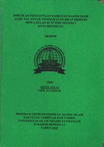 AULIA, SEPTI (2025) IMPLIKASI PENGGUNAAN FASILITAS MASJID OLEH GURU PAI UNTUK PENINGKATAN SIKAP DISIPLIN SISWA KELAS XI TP SMK NEGERI 2 KOTA BENGKULU. Undergraduate (S1) thesis, UIN Fatmawati Sukarno Bengkulu.