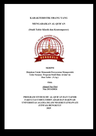 Fitri, Ahmad Nur (2025) KARAKTERISTIK ORANG YANG MENGABAIKAN AL-QUR’AN (Studi Tafsir Klasik dan Kontemporer). Undergraduate (S1) thesis, UIN Fatmawati Sukarno Bengkulu.