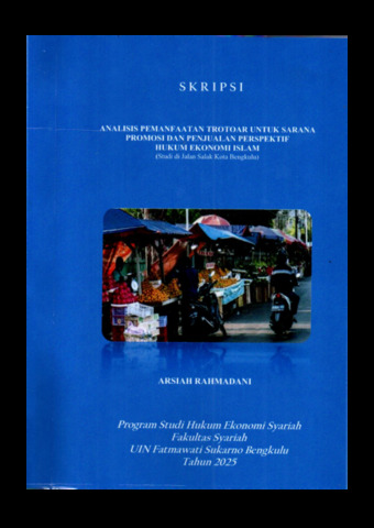 Rahmadani, Arsiah (2025) ANALISIS PEMANFAATAN TROTOAR UNTUK SARANA PROMOSI DAN PENJUALAN PERSPEKTIF HUKUM EKONOMI ISLAM (Studi di Jalan Salak Kota Bengkulu). Undergraduate (S1) thesis, UIN Fatmawati Sukarno Bengkulu.