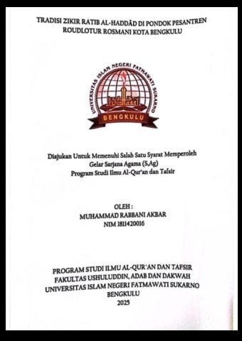 Akbar, Muhammad Rabbani (2025) TRADISI ZIKIR RATIB AL-HADDĀD DI PONDOK PESANTREN ROUDLOTUR ROSMANI KOTA BENGKULU. Undergraduate (S1) thesis, UIN Fatmawati Sukarno Bengkulu.