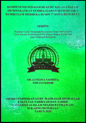 SASMITA, OK-LUSIANA (2025) KOMPETENSI PEDAGOGIK GURU KELAS 4 DALAM MENINGKATKAN PEMBELAJARAN MATEMATIKA KURIKULUM MERDEKA DI SDN 77 KOTA BENGKULU. Undergraduate (S1) thesis, UIN Fatmawati Sukarno Bengkulu.