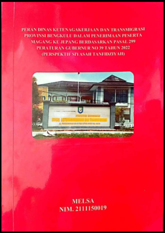 MELSA, MELSA (2025) PERAN DINAS KETENAGAKERJAAN DAN TRANSMIGRASI PROVINSI BENGKULU DALAM PENERIMAAN PESERTA MAGANG KE JEPANG BERDASARKAN PASAL 299 PERATURAN GUBERNUR NO 39 TAHUN 2022 (PERSPEKTIF SIYASAH TANFIDZIYAH). Undergraduate (S1) thesis, UIN Fatmawati Sukarno Bengkulu.