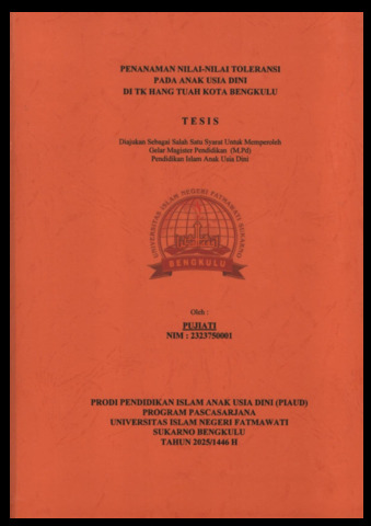 PUJIATI, PUJIATI (2025) PENANAMAN NILAI-NILAI TOLERANSI PADA ANAK USIA DINI Di TK HANG TUAH KOTA BENGKULU. Magister (S2) thesis, UIN Fatmawati Sukarno Bengkulu.