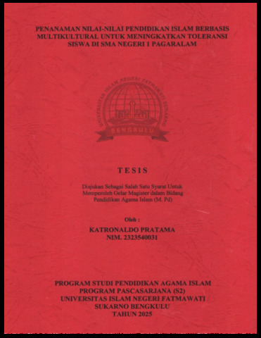 Pratama, Katronaldo (2025) Penanaman Nilai-Nilai Pendidikan Islam Berbasis Multikultural Untuk Meningkatkan Toleransi Siswa di SMA Negeri 1 Pagaralam. Magister (S2) thesis, UIN Fatmawati Sukarno Bengkulu.