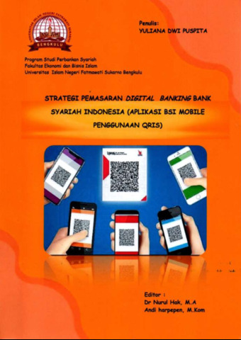 Buku ini membahas strategi pemasaran digital banking Bank Syariah Indonesia (aplikasi BSI Mobile penggunaan QRIS) mulai dari pemahaman Bank Syariah indonesia, pemasaran digital Bank Syariah Indonesia, aplikasi mobile Bank Syariah Indonesia dan pengetahuan penggunaan QRIS (Quick Response Code Indonesian Standard). Buku ini juga fokus membahas tentang definisi strategi pemasaran, fungsi strategi pemasaran, pedoman pemasaran, tujuan pemasaran, jenis-jenis strategi pemasaran, gambaran bank umum digital, regulasi digital Bank Syariah Indonesia, perlindungan hukum bagi nasabah Bank Syariah Indonesia. Dilengkapi dengan gambaran umum QRIS, Jenis Mekanisme Transaksi QRIS Bank Syariah Indonesia. Buku ini ditujukan bagi para praktisi perbankan, akademisi, dan mahasiswa yang tertarik mempelajari pemasaran QRIS BSI secara lebih mendalam. Buku ini bertujuan untuk membantu nasabah memahami digital banking aplikasi BSI mobile pengguna QRIS dengan penjelasan yang ada, buku ini menguraikan prinsip-prinsip syariah yang mendasari setiap strategi pemasaran QRIS BSI.