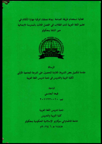 Anggasti, Vega (2025) فعالية استخدام طريقة الصامتة (Way Silent (لترقية مهار ة الكالم في تعليم اللغة العربية لدى الطالب في الفصل الثالث بالمدرسة االبتدائية متير الشفا بنجكولو Efektifitas Metode Silent Way Untuk Meningkatkan Kemampuan Berbicara Siswa Mata Pelajaran Bahasa Arab Kelas III Di MI Terpadu Mutiara Assyifa Kota Bengkulu. Undergraduate (S1) thesis, UIN Fatmawati Sukarno Bengkulu.
