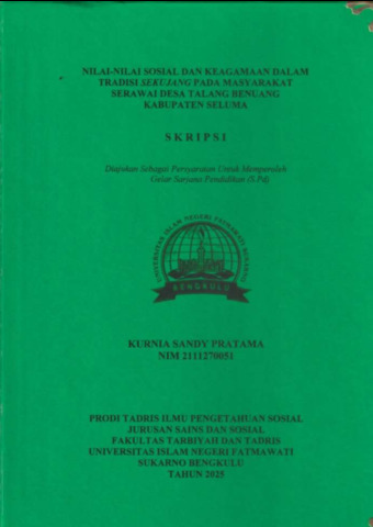 PRATAMA, KURNIA SANDY (2025) NILAI-NILAI SOSIAL DAN KEAGAMAAN DALAM TRADISI SEKUJANG PADA MASYARAKAT SERAWAI DESA TALANG BENUANG KABUPATEN SELUMA. Undergraduate (S1) thesis, UIN Fatmawati Sukarno Bengkulu.