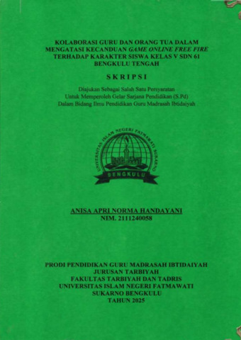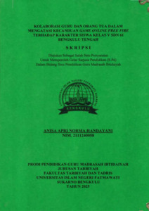 HANDAYANI, ANISA APRI NORMA (2025) KOLABORASI GURU DAN ORANG TUA DALAM MENGATASI KECANDUAN GAME ONLINE FREE FIRE TERHADAP KARAKTER SISWA KELAS V SDN 61 BENGKULU TENGAH. Undergraduate (S1) thesis, UIN Fatmawati Sukarno Bengkulu.