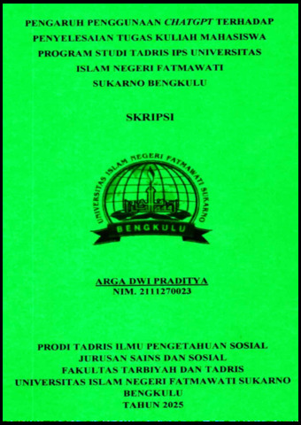 PRADITYA, ARGA DWI (2025) PENGARUH PENGGUNAAN CHATGPT TERHADAP PENYELESAIAN TUGAS KULIAH MAHASISWA PROGRAM STUDI TADRIS IPS UNIVERSITAS ISLAM NEGERI FATMAWATI SUKARNO BENGKULU. Undergraduate (S1) thesis, UIN Fatmawati Sukarno Bengkulu.