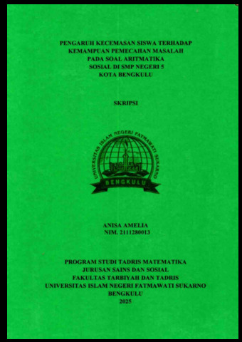 AMELIA, ANISA (2025) PENGARUH KECEMASAN SISWA TERHADAP KEMAMPUAN PEMECAHAN MASALAH PADA SOAL ARITMATIKA SOSIAL DI SMP NEGERI 5 KOTA BENGKULU. Undergraduate (S1) thesis, UIN Fatmawati Sukarno Bengkulu.