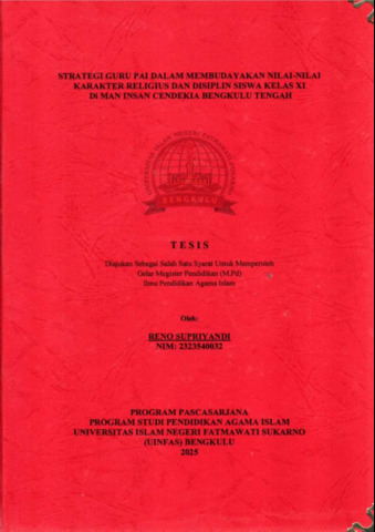SUPRIYANDI, RENO (2025) STRATEGI GURU PAI DALAM MEMBUDAYAKAN NILAI-NILAI KARAKTER RELIGIUS DAN DISIPLIN SISWA KELAS XI Di MAN INSAN CENDEKIA BENGKULU TENGAH. Magister (S2) thesis, UIN Fatmawati Sukarno Bengkulu.