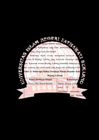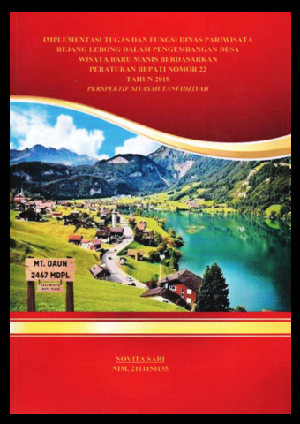 SARI, NOVITA (2025) IMPLEMENTASI TUGAS DAN FUNGSI DINAS PARIWISATA REJANG LEBONG DALAM PENGEMBANGAN DESA WISATA BARU MANIS BERDASARKAN PERATURAN BUPATI NOMOR 22 TAHUN 2018 PERSPEKTIF SIYASAH TANFIDZIYAH. Undergraduate (S1) thesis, UIN Fatmawati Sukarno Bengkulu.