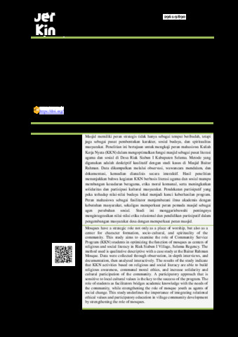 Alfaris, Suktan Muhammad and Sanjaya, Jeki and Fernando, Aldo (2025) Peran Mahasiswa Kkn Berbasis Masjid Dalam Meningkatkan Literasi Keagamaan Dan Sosial Masyarakat Desa Riak Siabun. Jurnal Pengabdian Masyarakat dan Riset Pendidikan, 2 (2). pp. 2818-2826. ISSN 2961-9890