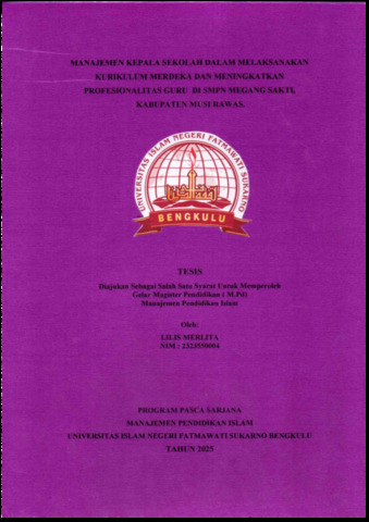 MERLITA, LILIS (2025) MANAJEMEN KEPALA SEKOLAH DALAM MELAKSANAKAN KURIKULUM MERDEKA DAN MENINGKATKAN PROFESIONALITAS GURU DI SMPN MEGANG SAKTI, KABUPATEN MUSI RAWAS. Magister (S2) thesis, UIN Fatmawati Sukarno Bengkulu.