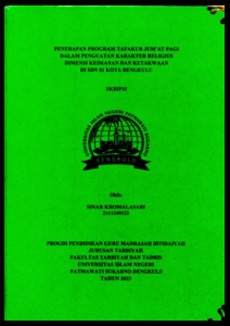 KHOMALASARI, SINAR (2025) PENERAPAN PROGRAM TAFAKUR JUM’AT PAGI DALAM PENGUATAN KARAKTER RELIGIUS DIMENSI KEIMANAN DAN KETAKWAAN DI SDN 81 KOTA BENGKULU. Undergraduate (S1) thesis, UIN Fatmawati Sukarno Bengkulu.