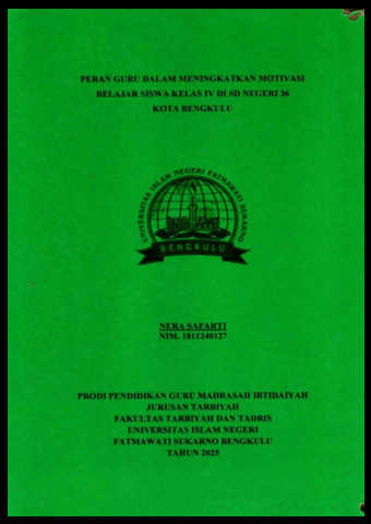 SAFARTI, NERA (2025) PERAN GURU DALAM MENINGKATKAN MOTIVASI BELAJAR SISWA KELAS IV DI SD NEGERI 36 KOTA BENGKULU. Undergraduate (S1) thesis, UIN Fatmawati Sukarno Bengkulu.