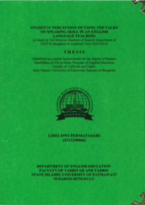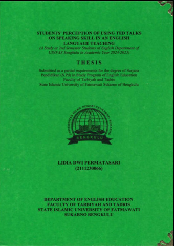 PERMATASARI, LIDIA DWI (2025) STUDENTS’ PERCEPTION OF USING TED TALKS ON SPEAKING SKILL IN AN ENGLISH LANGUAGE TEACHING (A Study at 2nd Semester Students of English Department of UINFAS Bengkulu in Academic Year 2024/2025). Undergraduate (S1) thesis, UIN Fatmawati Sukarno Bengkulu.