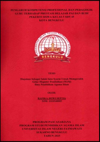 PENGARUH KOMPETENSI PROFESIONAL DAN PEDAGOGIK GURU TERHADAP PRESTASI BELAJAR PAI DAN BUDI PEKERTI SISWA KELAS 5 SDN 45 KOTA BENGKULU