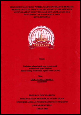 FADHILA, LIQFA NURUL (2025) PENGEMBANGAN MEDIA PEMBELAJARAN INTERAKTIF BERBASIS WEBSITE GENIALLY PADA MATA PELAJARAN AL-ISLAM UNTUK MENINGKATKAN MINAT BELAJAR SISWA KELAS X DI SMA MUHAMMADIYAH 1 BOARDING SCHOOL KOTA BENGKULU. Undergraduate (S1) thesis, UIN Fatmawati Sukarno Bengkulu.