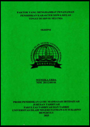 ERDA, WENSIKA (2025) FAKTOR YANG MENGHAMBAT PENANAMAN PENDIDIKAN KARAKTER SISWA KELAS TINGGI DI SDN 81 SELUMA. Undergraduate (S1) thesis, UIN Fatmawati Sukarno Bengkulu.