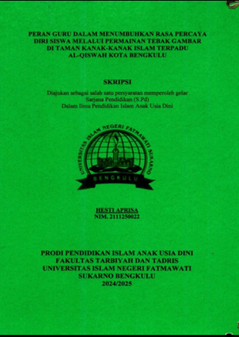Aprisa, Hesti (2025) PERAN GURU DALAM MENUMBUHKAN RASA PERCAYA DIRI SISWA MELALUI PERMAINAN TEBAK GAMBAR DI TAMAN KANAK-KANAK ISLAM TERPADU AL-QISWAH KOTA BENGKULU. Undergraduate (S1) thesis, UIN Fatmawati Sukarno Bengkulu.