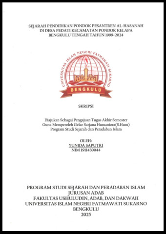Saputri, Yunida (2025) SEJARAH PENDIDIKAN PONDOK PESANTREN AL-HASANAH DI DESA PEDATI KECAMATAN PONDOK KELAPA BENGKULU TENGAH TAHUN 1999-2024. Undergraduate (S1) thesis, UIN Fatmawati Sukarno Bengkulu.