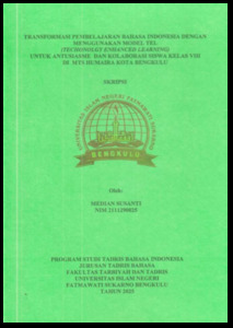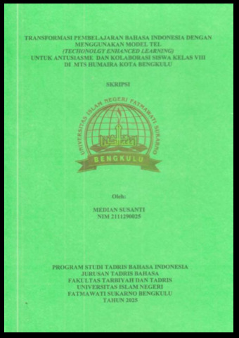 SUSANTI, MEDIAN (2025) TRANSFORMASI PEMBELAJARAN BAHASA INDONESIA DENGAN MENGGUNAKAN MODEL TEL (TECHONOLGY ENHANCED LEARNING) UNTUK ANTUSIASME DAN KOLABORASI SISWA KELAS VIII DI MTS HUMAIRA KOTA BENGKULU. Undergraduate (S1) thesis, UIN Fatmawati Sukarno Bengkulu.