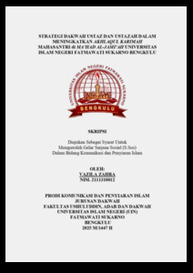 ZAHRA, VAZILA (2025) STRATEGI DAKWAH USTAZ DAN USTAZAH DALAM MENINGKATKAN AKHLAQUL KARIMAH MAHASANTRI di MA’HAD AL-JAMI’AH UNIVERSITAS ISLAM NEGERI FATMAWATI SUKARNO BENGKULU. Undergraduate (S1) thesis, UIN Fatmawati Sukarno Bengkulu.