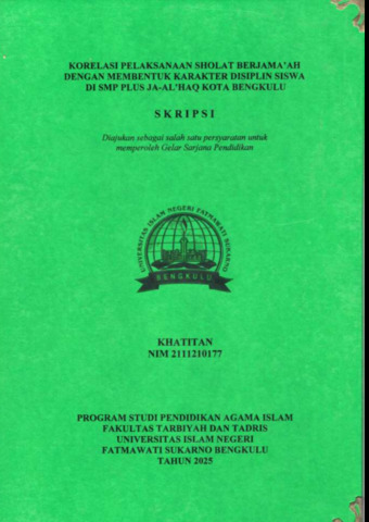 KHATITAN, KHATITAN (2025) KORELASI PELAKSANAAN SHOLAT BERJAMA’AH DENGAN MEMBENTUK KARAKTER DISIPLIN SISWA DI SMP PLUS JA-AL’HAQ KOTA BENGKULU. Undergraduate (S1) thesis, UIN Fatmawati Sukarno Bengkulu.