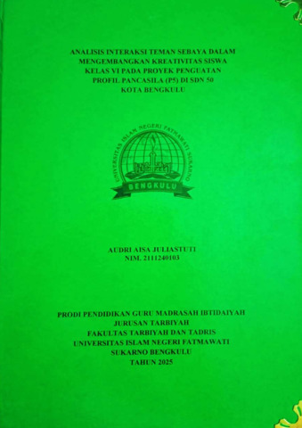 JULIASTUTI, AUDRI AISA (2025) ANALISIS INTERAKSI TEMAN SEBAYA DALAM MENGEMBANGKAN KREATIVITAS SISWA KELAS VI PADA PROYEK PENGUATAN PROFIL PANCASILA (P5) DI SDN 50 KOTA BENGKULU. Undergraduate (S1) thesis, UIN Fatmawati Sukarno Bengkulu.