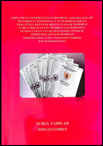 FADILLAH, NURUL (2025) IMPLEMENTASI PERCEPATAN REFORMA AGRARIA DALAM PENERBITAN SERTIFIKAT TANAH BERDASARKAN PERATURAN BUPATI KABUPATEN KAUR NOMOR 45 TAHUN 2018 TENTANG PEMBIAYAAN PERSIAPAN PENDAFTARAN TANAH SISTEMATIS LENGKAP PERSPEKTIF SIYASAH IDARIYAH (Studi Desa Datar Lebar 1 Kecamatan Lungkang Kule Kabupaten Kaur). Undergraduate (S1) thesis, UIN Fatmawati Sukarno Bengkulu.