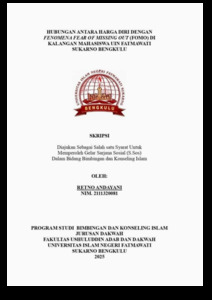 ANDAYANI, RETNO (2025) HUBUNGAN ANTARA HARGA DIRI DENGAN FENOMENA FEAR OF MISSING OUT (FOMO) DI KALANGAN MAHASISWA UIN FATMAWATI SUKARNO BENGKULU. Undergraduate (S1) thesis, UIN Fatmawati Sukarno Bengkulu.