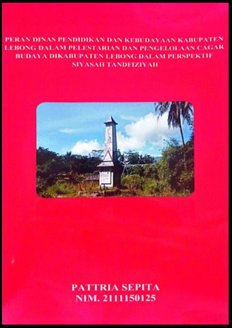Sepita, Pattria (2025) PERAN DINAS PENDIDIKAN DAN KEBUDAYAAN KABUPATEN LEBONG DALAM PELESTARIAN DAN PENGELOLAAN CAGAR BUDAYA DIKABUPATEN LEBONG DALAM PERSPEKTIF SIYASAH TANDFIZIYAH. Undergraduate (S1) thesis, UIN Fatmawati Sukarno Bengkulu.
