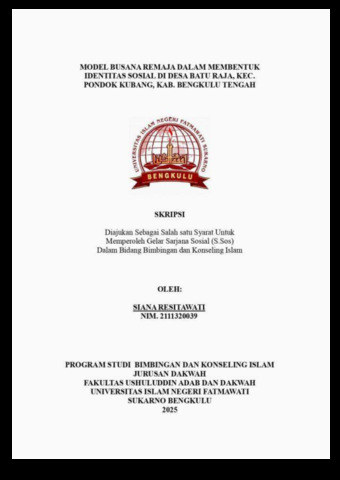 RESITAWATI, SIANA (2025) MODEL BUSANA REMAJA DALAM MEMBENTUK IDENTITAS SOSIAL DI DESA BATU RAJA, KEC. PONDOK KUBANG, KAB. BENGKULU TENGAH. Undergraduate (S1) thesis, UIN Fatmawati Sukarno Bengkulu.