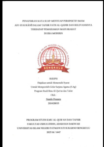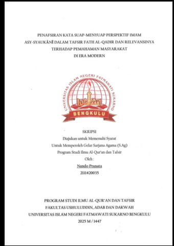 Pranata, Nando (2025) PENAFSIRAN KATA SUAP-MENYUAP PERSPEKTIF IMAM ASY-SYAUKĀNĪ DALAM TAFSIR FATH AL-QADIR DAN RELEVANSINYA TERHADAP PEMAHAMAN MASYARAKAT DI ERA MODERN. Undergraduate (S1) thesis, UIN Fatmawati Sukarno Bengkulu.
