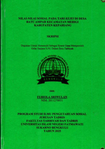 SRIWULAN, FEBIOLA (2025) NILAI-NILAI SOSIAL PADA TARI KEJEI DI DESA BATU AMPAR KECAMATAN MERIGI KABUPATEN KEPAHIANG. Undergraduate (S1) thesis, UIN Fatmawati Sukarno Bengkulu.