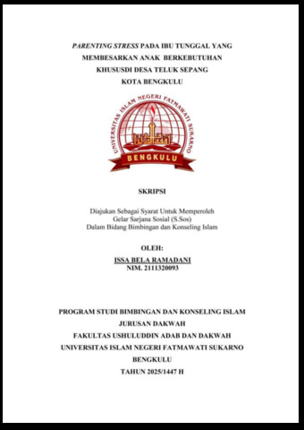 RAMADANI, ISSA BELA (2025) PARENTING STRESS PADA IBU TUNGGAL YANG MEMBESARKAN ANAK BERKEBUTUHAN KHUSUSDI DESA TELUK SEPANG KOTA BENGKULU. Undergraduate (S1) thesis, UIN Fatmawati Sukarno Bengkulu.