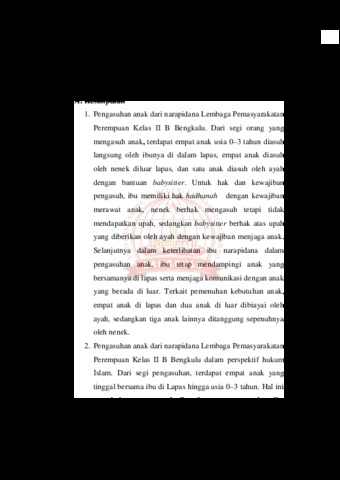 | Uncontrolled Keywords: | Pengasuhan Anak, Narapidana Perempuan, Hukum Islam, Hukum Positif, Hadhanah | ||||||||||||