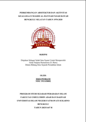 PITRIANI, ERZI (2025) PERKEMBANGAN ARSITEKTUR DAN AKTIVITAS KEAGAMAAN MASJID AL-MANNAR PASAR BAWAH BENGKULU SELATAN TAHUN 1970-2020. Undergraduate (S1) thesis, UIN Fatmawati Sukarno Bengkulu.