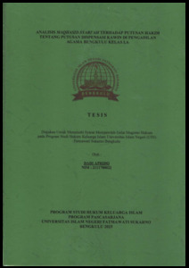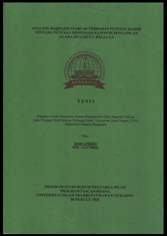 APRIDO, DADI (2025) ANALISIS MAQHASID SYARI’AH TERHADAP PUTUSAN HAKIM TENTANG PUTUSAN DISPENSASI KAWIN DI PENGADILAN AGAMA BENGKULU KELAS I.A. Magister (S2) thesis, UIN Fatmawati Sukarno Bengkulu.