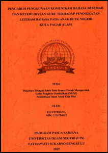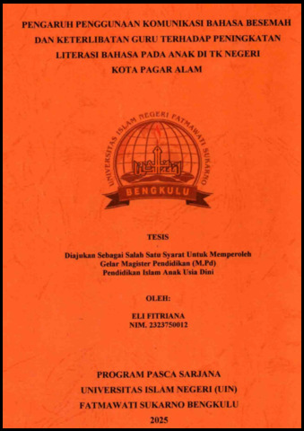 FITRIANA, ELI (2025) PENGARUH PENGGUNAAN KOMUNIKASI BAHASA BESEMAH DAN KETERLIBATAN GURU TERHADAP PENINGKATAN LITERASI BAHASA PADA ANAK DI TK NEGERI KOTA PAGAR ALAM. Magister (S2) thesis, UIN Fatmawati Sukarno Bengkulu.