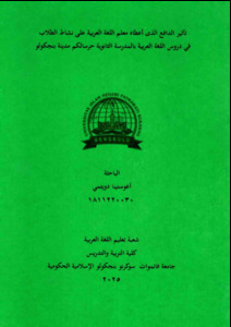 الباحثة :َََُُُِِّٖأغوستينا دكيتمي، رقم التسجيل :،ادلوضوع: ادلوضوع:تأثيرالدافعالذىأعطاهمعلماللغةالعربيةعلىنشاط الطالبفيدروساللغةالعربيةبالمدرسةالثانويةحرسالكممدينة بنجكولو.يهدؼ ىذا البحث إىل معرفةتأث َت دافعية معلم اللغة العربية على نشاط الطبلب ُب مادة اللغة العربية دبدرسة متوسطة حرسالكم دبدينة بنجكولو.استخدـ ىذا البحث منهجان كميِّا من نوع البحث االرتباطي. كانت العينة مكوٌنة منِّكطالبان من الصف السابعبًب اختيارىم ، بطريقة العينة القصديٌة(Purposive Sampling).ُجي عت البيانات من خبلؿ االستبيانات كادلبلحظة كالتوثيق. أظهرت نتائج ربليل البيانات باستخداـ اختبار بَتسوف لبلرتباط كجود عبلقة إغلابية ذات داللة إحصائية ب ُت دافعية ادلعلم كنشاط الطبلب، حيث بلغت قيمة الداللة (Sig.) َ٫ََّ< َ٫َٓ، كمعاملاالرتباط َ٫َِٓ.كما أظهرت نتائج اختبار االضلدار اخلطي البسيط أف دافعية ادلعلم تؤثر بنسبة ِٓ٫ِ٘ ُب تعلم اللغة العربية. كعليو، ؽلكن االستنتاج أف على نشاط الطبلب كدارتفاع دافعية ادلعلم يؤدم إىل زيادة نشاط الطبلب ُب عملية التعلم. كيؤ ُب ىذا البحث أعلية دكر ادلكتهم الفعالةعلم ُب ربفي الطبلب ل يادة مشار الصف.