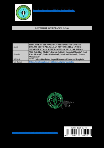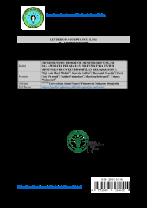 Mardia, Hasnatul and Putri, Febriani Melinda and Wulandari, Triana and dkk, dkk (2025) LAPORAN KEGIATAN PENGABDIAN PROGRAM MENTORSHIP AND TUTORING ONLINE. Project Report. LPPM UIN Fatmawati Sukarno Bengkulu, Bengkulu. (Submitted)